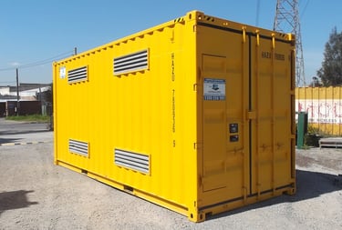 Our range of HAZMAT certified goods containers means you can safely transport and store a range of hazardous goods, including gas cylinders, flammable liquids, flammable solids, oxidising agents, organic peroxides, toxic substances, corrosive substance as well as a range of miscellaneous dangerous goods. Our containers are not only suited to store dangerous goods, but also non-hazardous materials where there are possible risks with spillage.