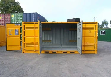 Our dangerous goods storage containers are available in 3 metre and 6 metre sizes and are designed to ensure maximum safety to you, your workers, and the general public. We also offer 20 foot high cube side opening containers for maximum storage space, and can also design 40 foot units if required.